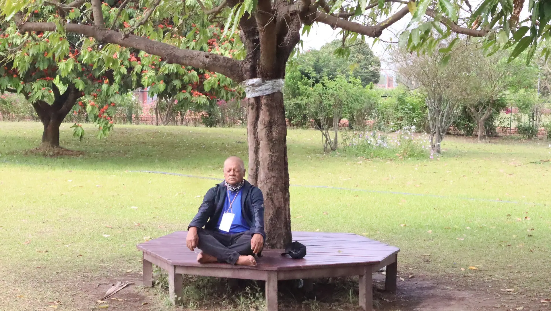 अर्को तस्विरमा, सुनिलले “मेरो खुट्टा दुखेको छ, हिन्न सक्दिन यहिँ बस्छु” भनेर रुख मुनि ध्यानको मुद्रामा बसेका थिए , मैले त्यहि मौकामा लिएको तस्विर ।